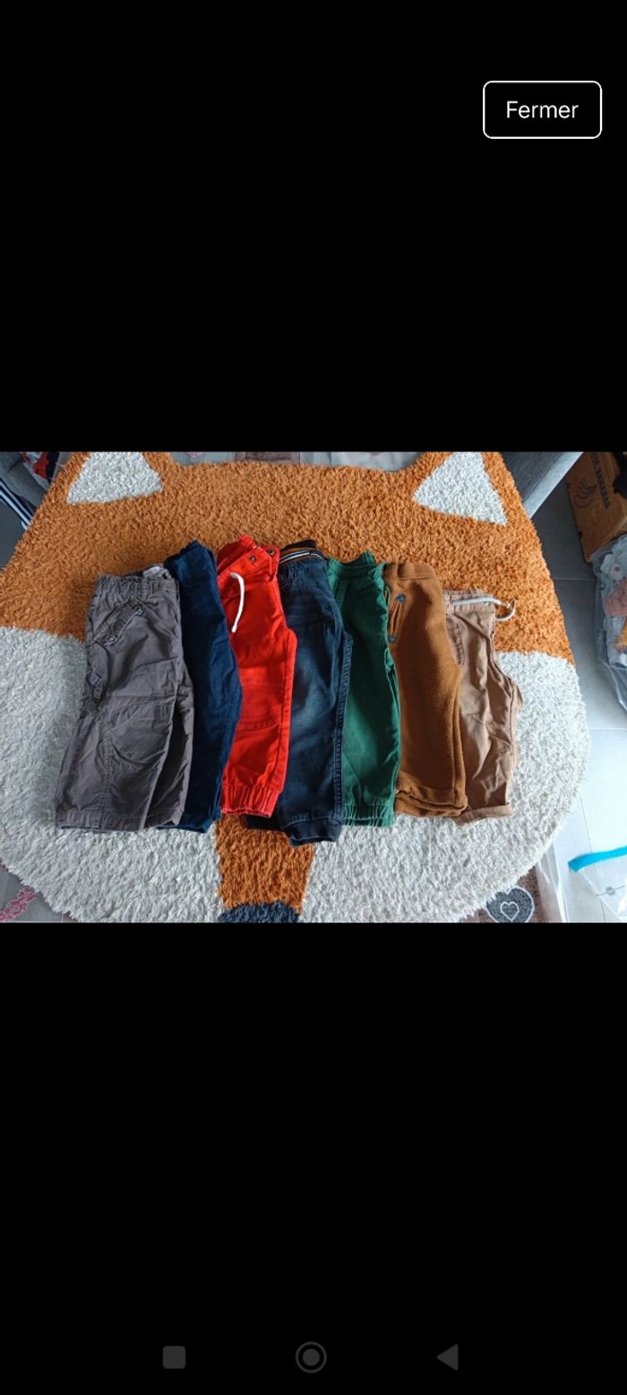 2 obaïbi (marron) 2 Kiabi (vert et bleu marine) 1 Mayoral (jean) 1 Z graine de blé (rouge) 1 la compagnie des petits (marron foncé)