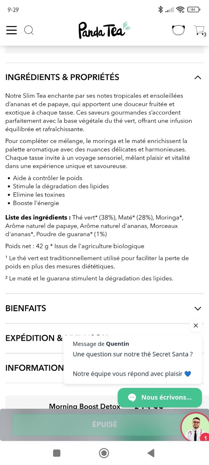 Tea slim tea de chez panda tea Acheté récemment Juste 1 sachet d'utilisé