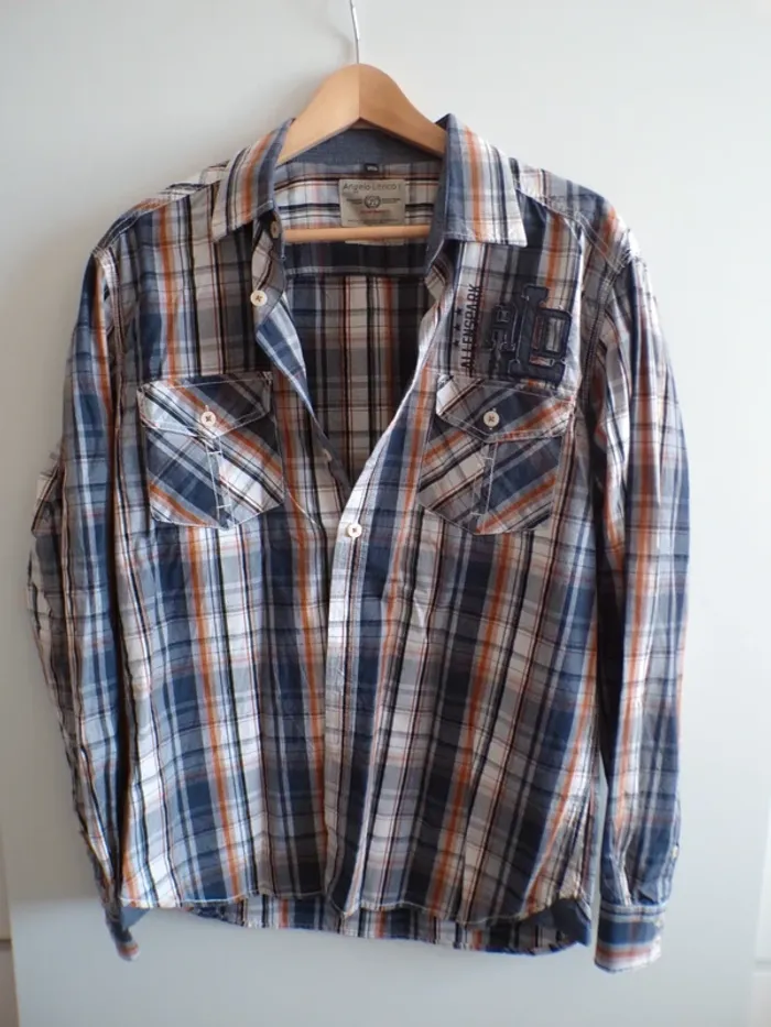 Chemise homme à carreaux, manches longues Angelo Litrico - Taille L 41/42, Slim fit, en très bon état, le dessin des lettres a les fils de tirés. Mon dressing est trié par catégories, tailles et saisons pour les vêtements. Cliquez sur mes liens # qui sont dans l'annonce. #sonia222404 #hommeLsonia222404