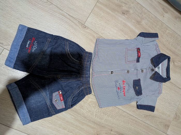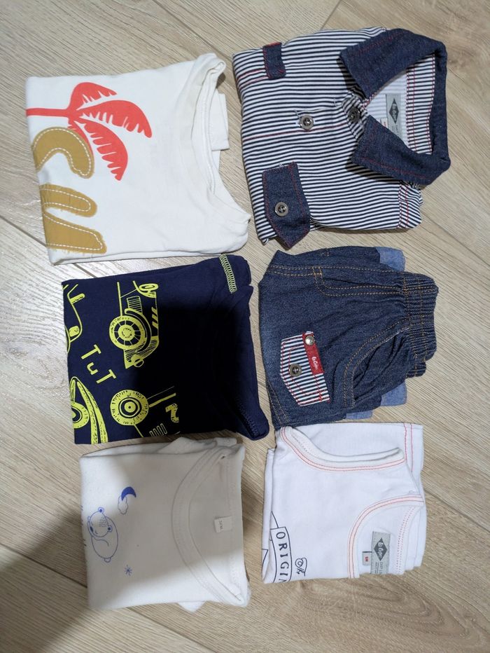 Lot taille 9 mois en bon état, pas de tâches, pas de trou. Première main. Le lot comprend : 1 bodie manche courte 2 t-shirt manche courte 1 ensemble 3 pièces lee Cooper