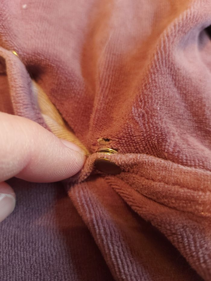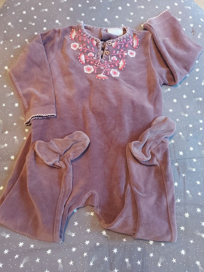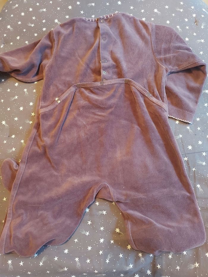 Pyjama dors bien, mauve foncé 1 accroc derrière sur tissu du bouton pressoir, peut se recoudre