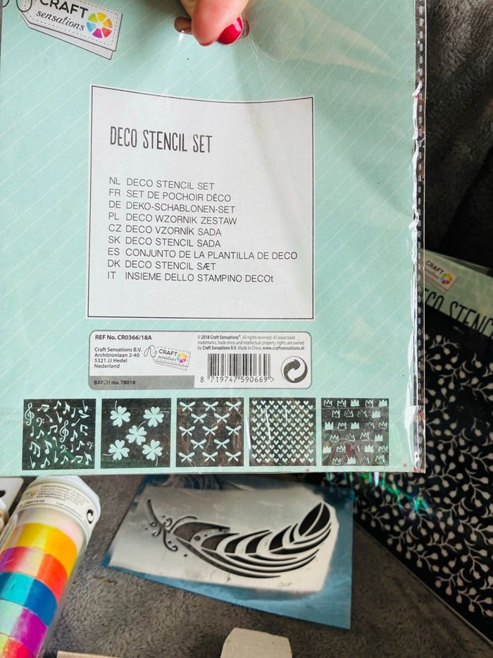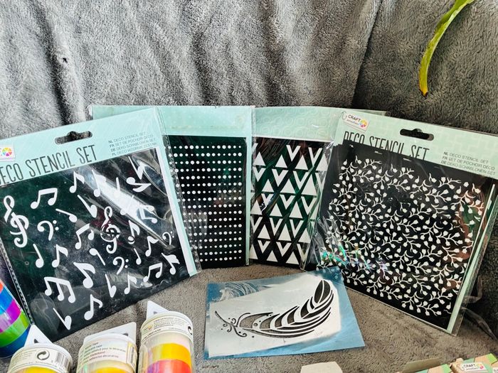 Lot pour loisirs créatifs Pochoirs (plusieurs pochoirs à l’intérieur de chaque pochette) : certains déjà utilisés Colle glue (craft sensation) : neufs Yeux autocollants : neufs Rubans adhésifs multicolore et brillants (craft sensation) : neufs Tissu : neufs Lot pour l’ensemble Vous achetez ce que vous voyez : ni plus ni moins #stefetjuju51divers maison non fumeurs bien d’autres choses dans mon dressing de nouveaux articles très régulièrement nombreux # dans mon profil pour faciliter vos recherches merci pour votre visite et belle journée ☺️ #lot #glue #colle #pochoir #ruban #loisir