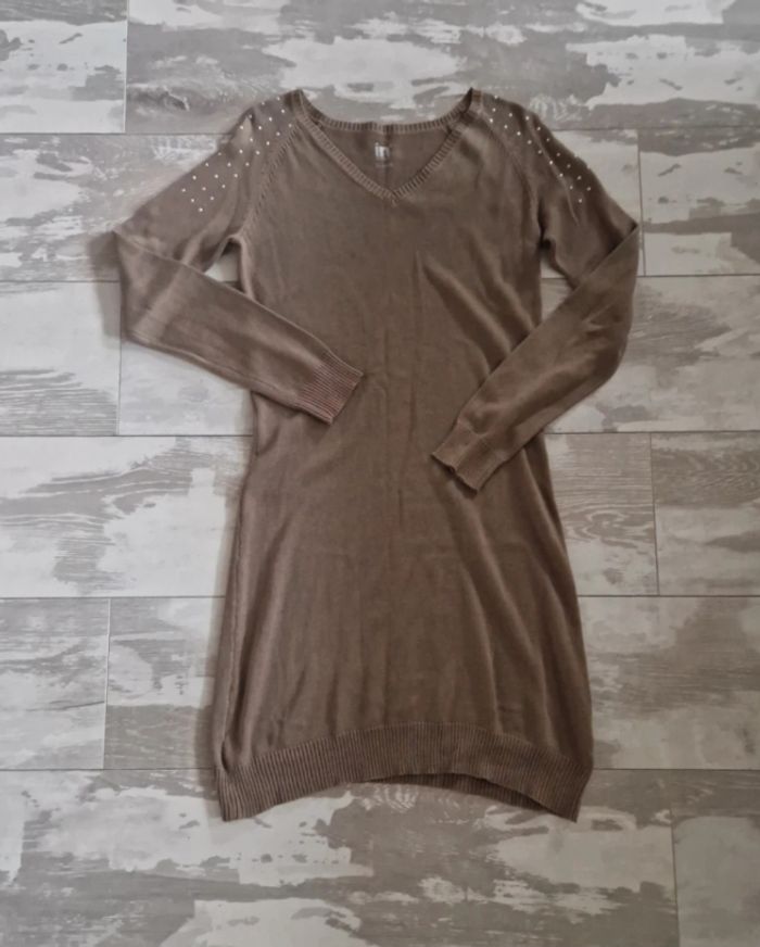 Robe manche longue marron avec col en V Sequins sur les épaules 👗 Taille plus M 💫Très bon état 📦 Envoi rapide