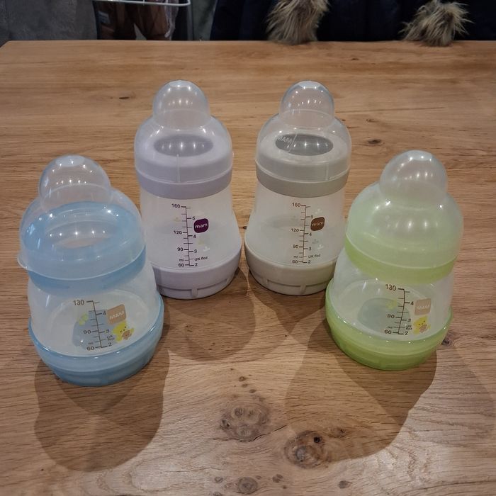 Lot de 4 biberons MAM petits formats 2 biberons 130ml + 2 biberons de 160ml Vendus sans tétines
