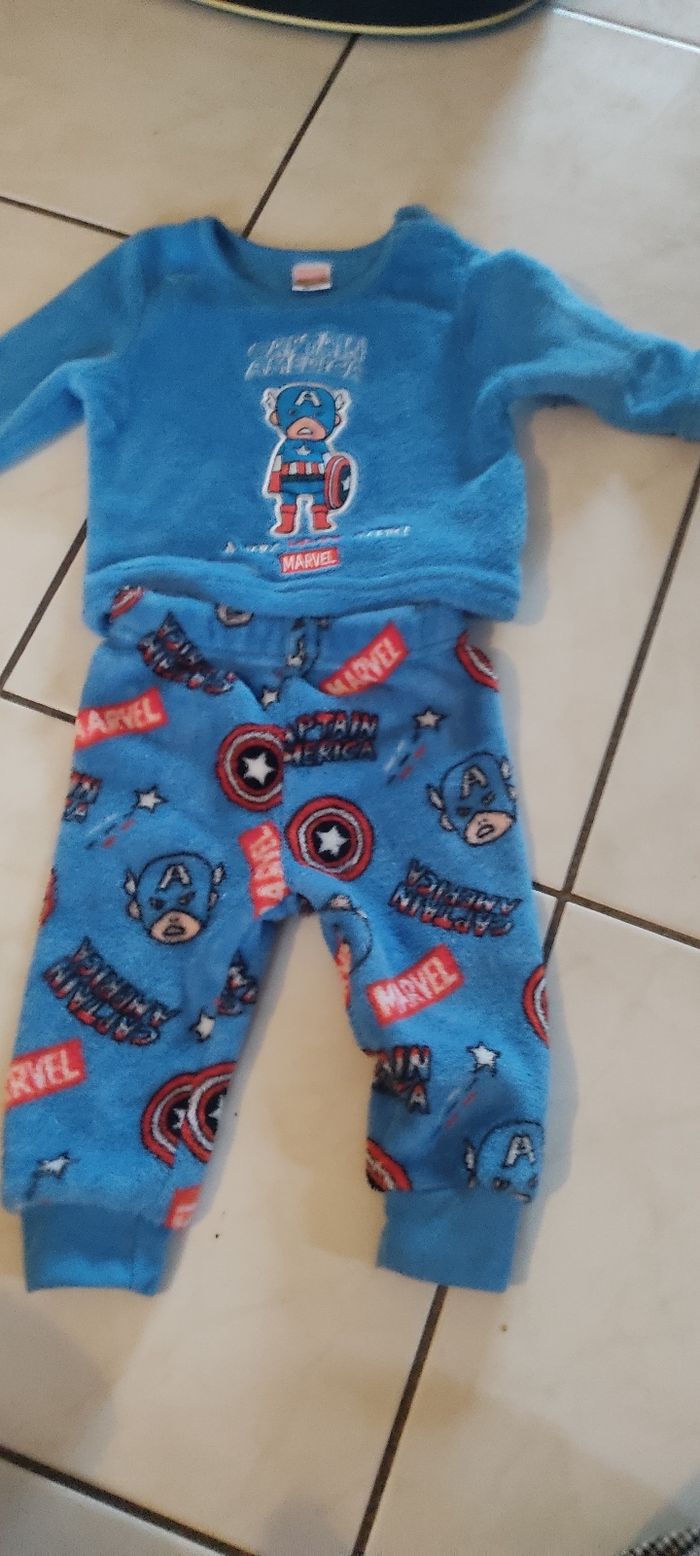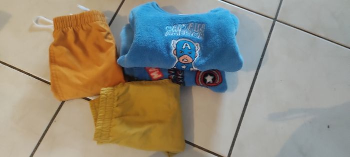 Lot vêtements garçon 6 mois 1 pyjama marvel captain America 1 pantalon orange 1 pantalon jaune N hésitez pas à créer un lot afin d' optimiser les frais de port #6mois #lotdevetements