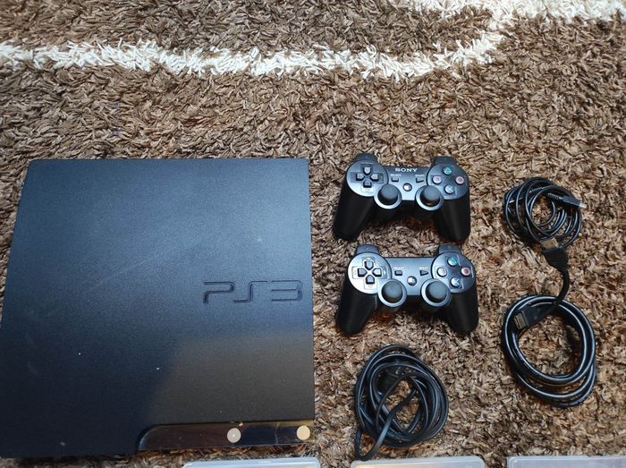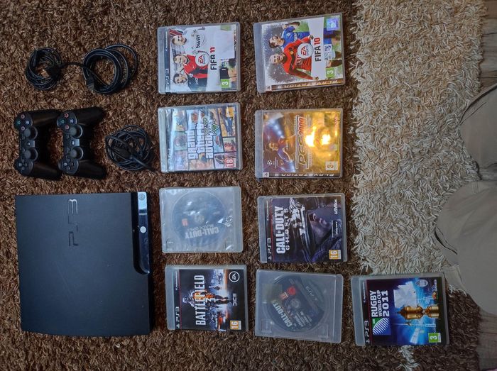 Ensemble ps3 ( 2 manettes , 1 fil pour charger et les câbles d'alimentation )plus 9 jeux