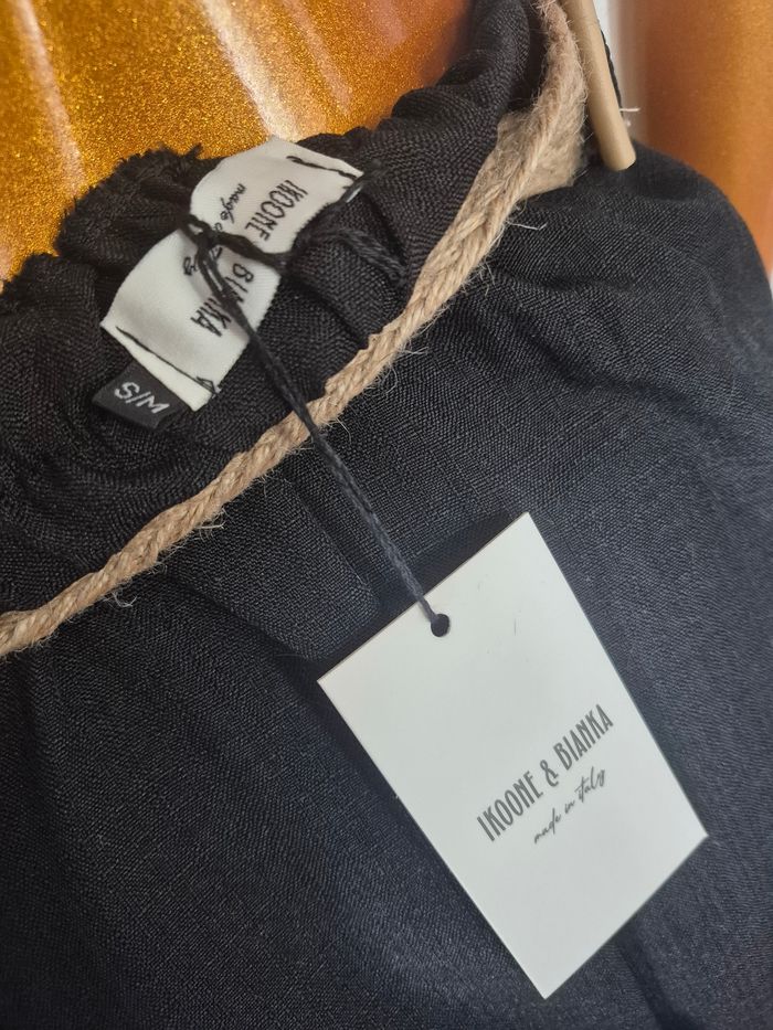 👖 Pantalon Palazzo Noir avec Poches et Ceinture 🔎 Taille S/M 📏 Longueur du Pantalon : Environ 100 cm 💠 65% Polyester, 35% Lin 🏷 Neuf avec étiquette, sous blister 🚚 Envoi Rapide et Soigné