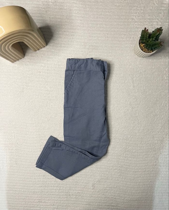 Pantalon Gémo pour enfant, 24 mois. Couleur bleu/gris facile à porter et assortir. Fermeture bouton, taille confortable, matière légère idéale pour le quotidien. Coupe droite, poches devant et derrière. 📦 Envoi rapide