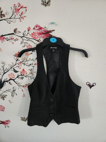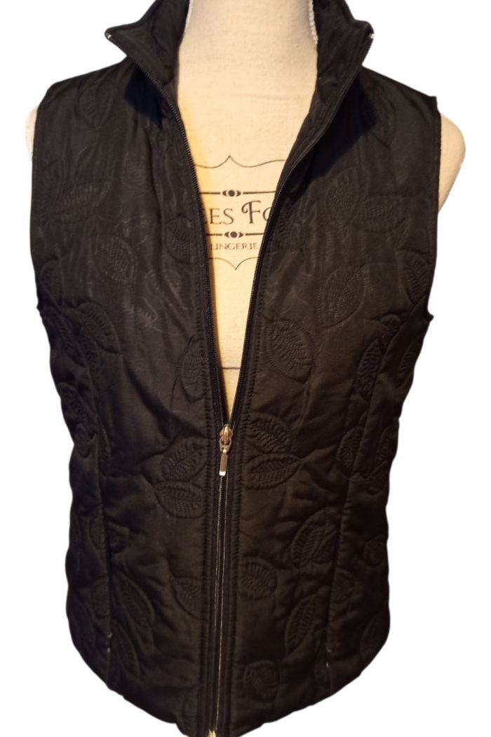 Veste noire sans manches avec motifs intégré,2 fermeture éclair,de taille 38