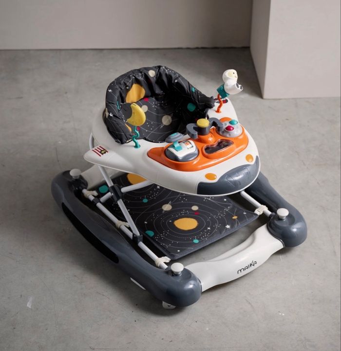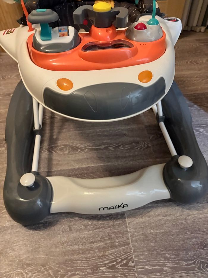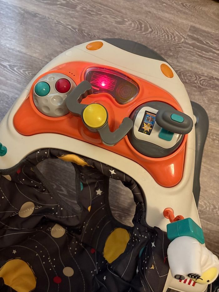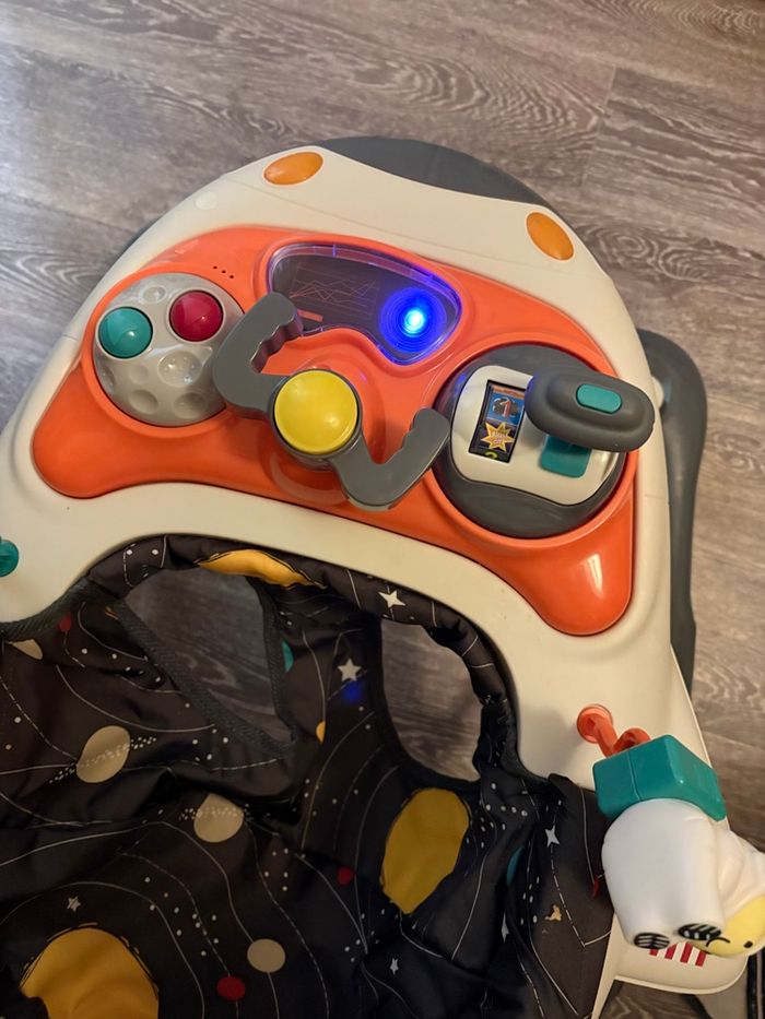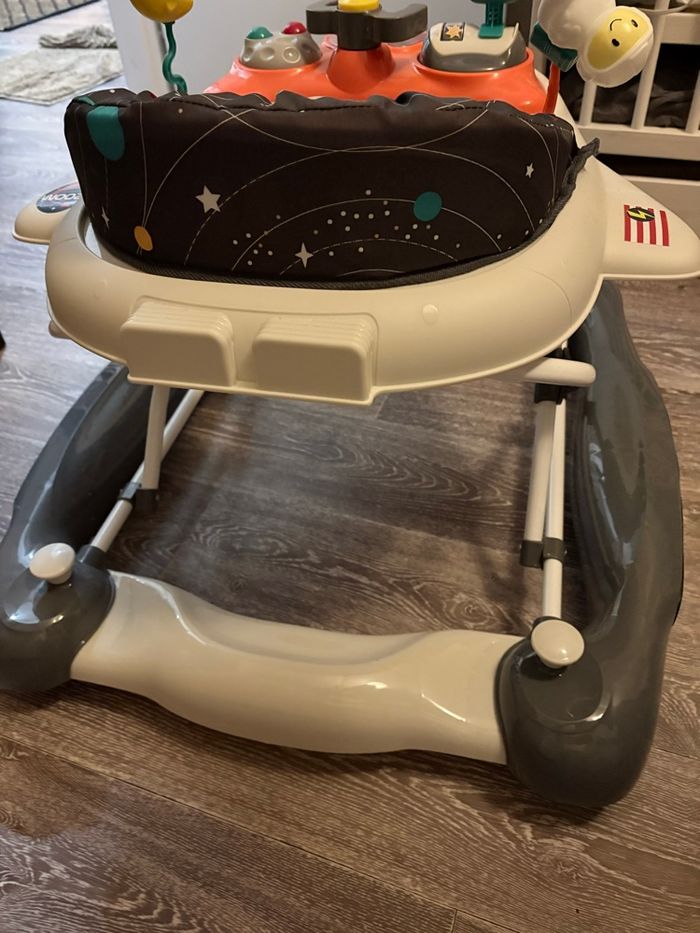 Testé mais finalement pas utilisé Valeur 80€90 chez Aubert REMISE EN MAINS PROPRES PRIVILÉGIÉ 2 en 1 : trotteur et balancelle selon l’humeur de bébé Design ludique de navette spatiale pour stimuler l’imaginaire et l’envie d’explorer Tablette d’activités amovible avec sons, lumières, jouets interactifs et anneau de dentition Assise réglable en hauteur pour s’adapter à la croissance de bébé Sécurité renforcée : patins antichute et structure stable Pliable pour un rangement et un transport faciles Utilisable dès 6 mois (selon tonus)
