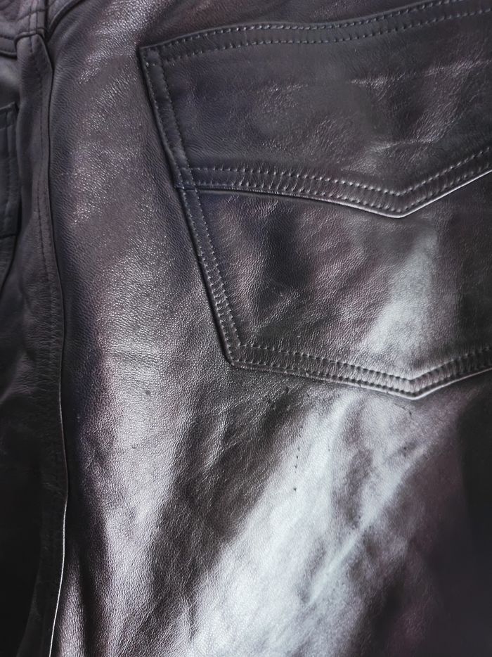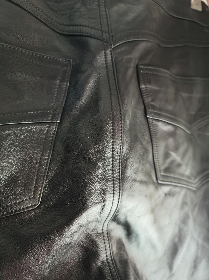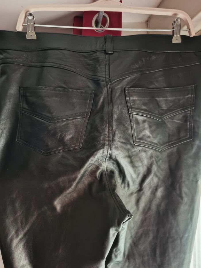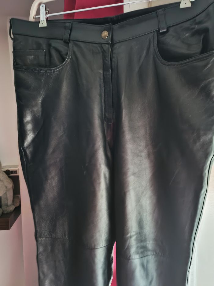 Pantalon en cuir d'agneau mesure demi taille 52 cm, légèrement griffé au niveau des poches arrières