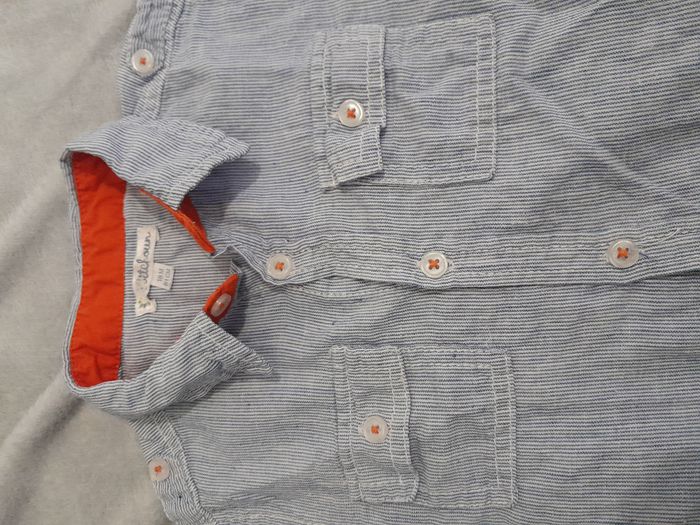 Chemise, manche courte, à rayure, 2 poche, attache bouton devant Matière : 70 % Coton, 30 % Lin