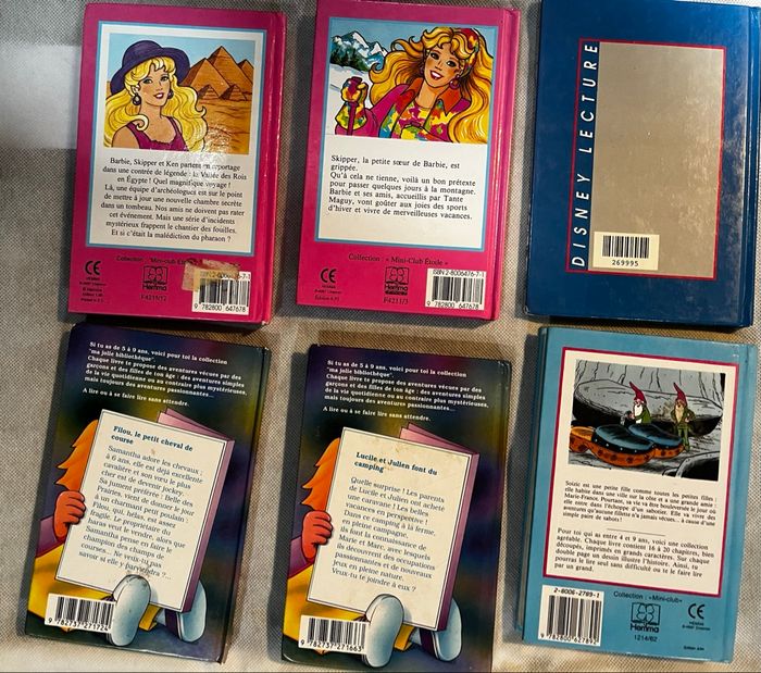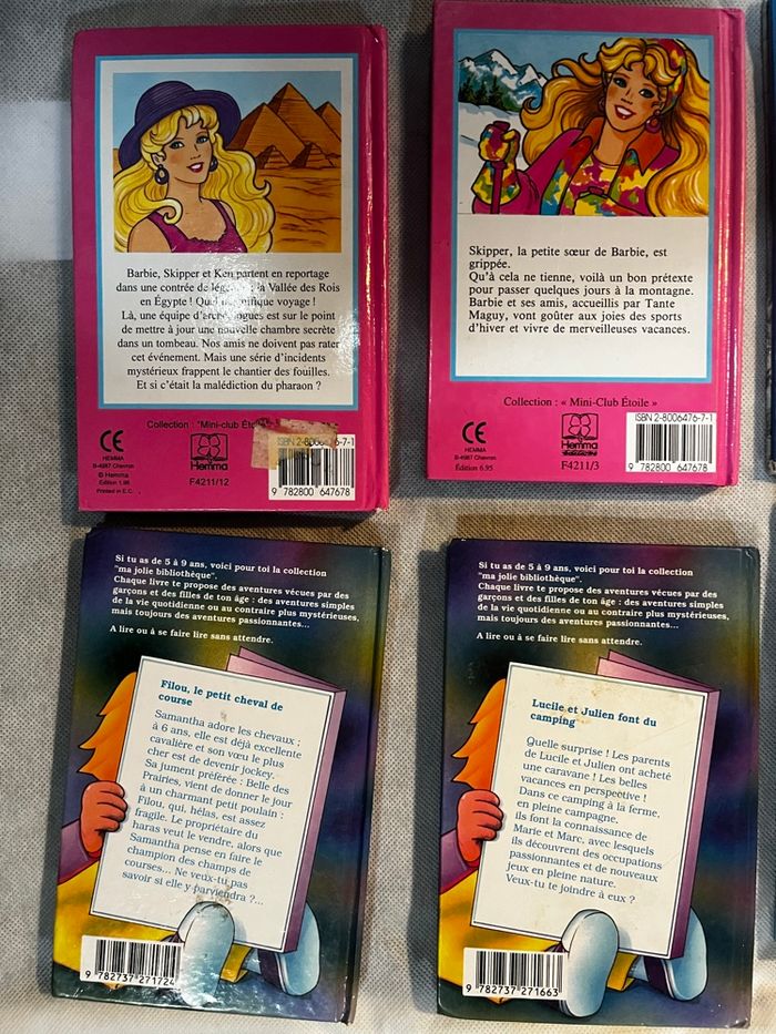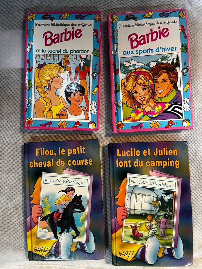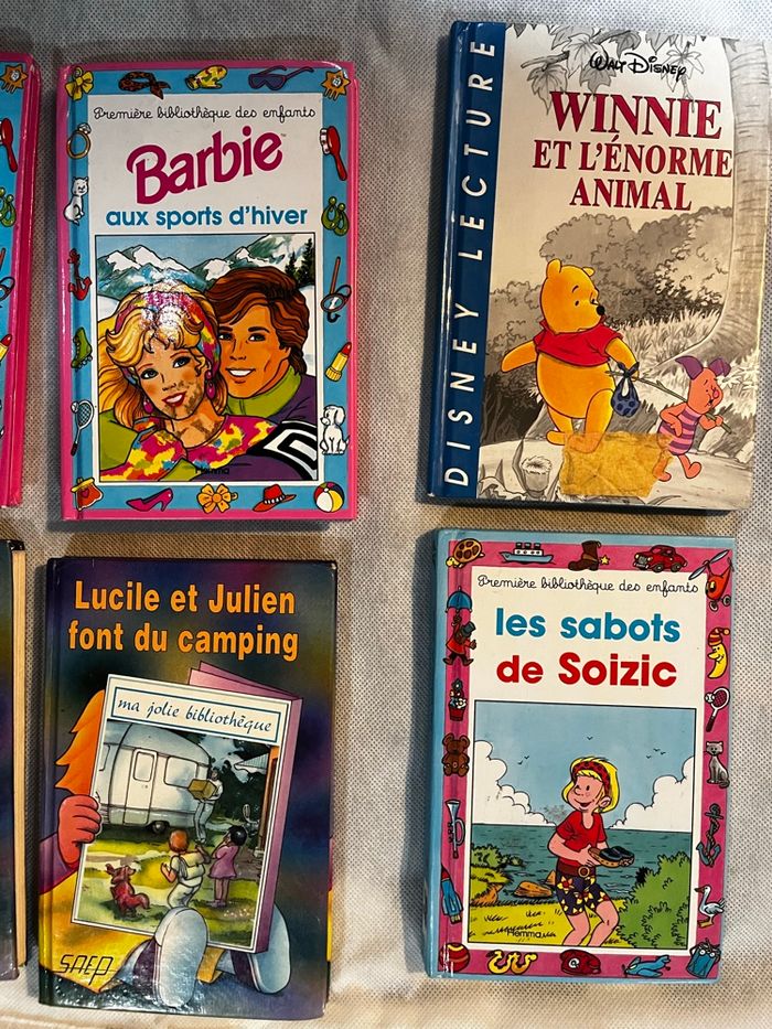 livres pour enfants en bon état, idéal pour jeunes lecteurs : ✨ 2 livres Barbie 🐻 1 livre Winnie l’ourson 🏕️ 2 livres Lucie et Julien font du camping 👞 les sabots de Soïzic 💰 Prix : 2 € le livre