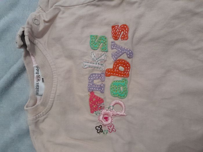 T-shirt, manche longue, imprimé devant, attache bouton pression sur épaule Matière : 100 % Coton Marque : Winkies