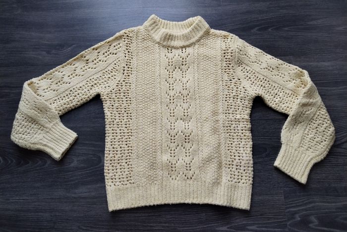 Joli pull jaune clair, ajouré. Taille : XS 34 Marque : Kiabi Bon état