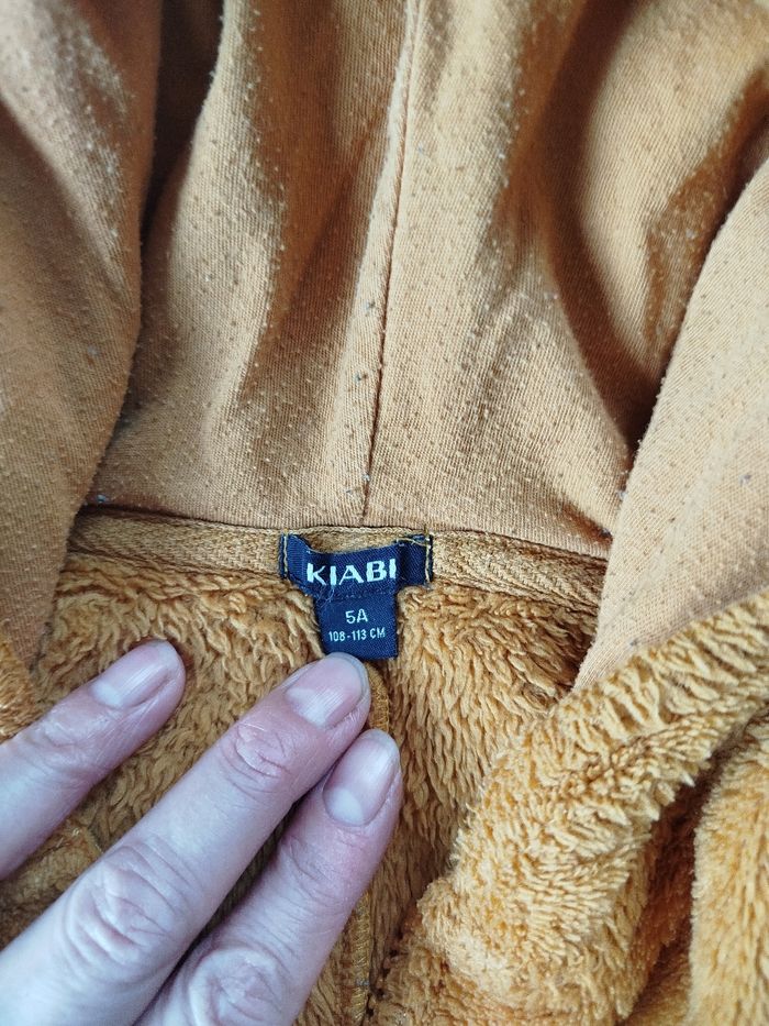 Combinaison pyjama tigre jaune moutarde 5 ans. Petits trous derrière jambe gauche et petites bouloches en bas des jambes mais peu encore très bien servir.