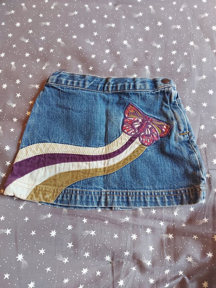 Jupe jeans, motif papillon