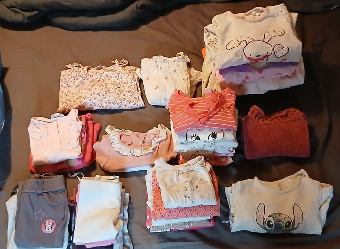 Bonjour je vend un lot bebe fille de 37 pieces en taille 6 mois pour 20€ ce qui fait a peux près 0.54€ part pièces. Il comporte: 1 ensemble stitch (pull et pantalon) 1 pull 13 t-shirt manches longues 3 t-shirt manches courtes 2 bodies manche courte 4 leggings 3 pantalons 1 combinaison bretelles pantalon 1 combinaison bretelles short 1 pyjama sans pied 7 pyjama velours