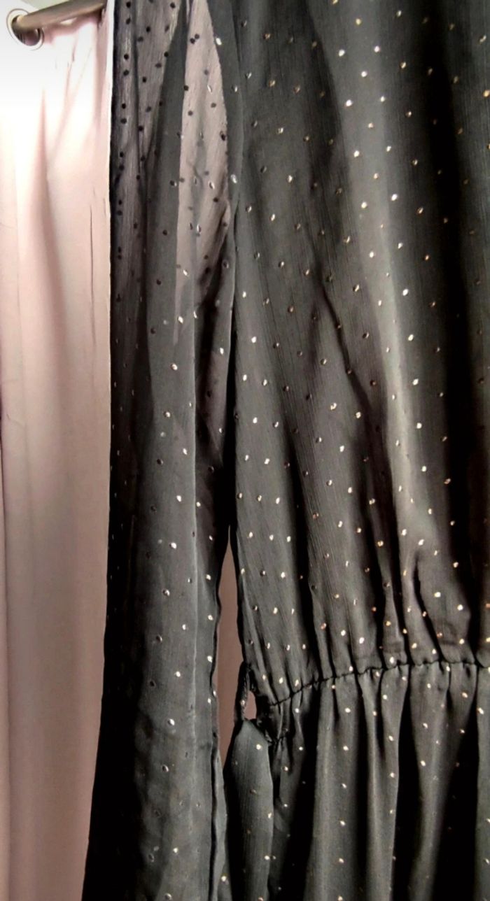 Magnifique robe longue Manches transparentes Noire et Dorée