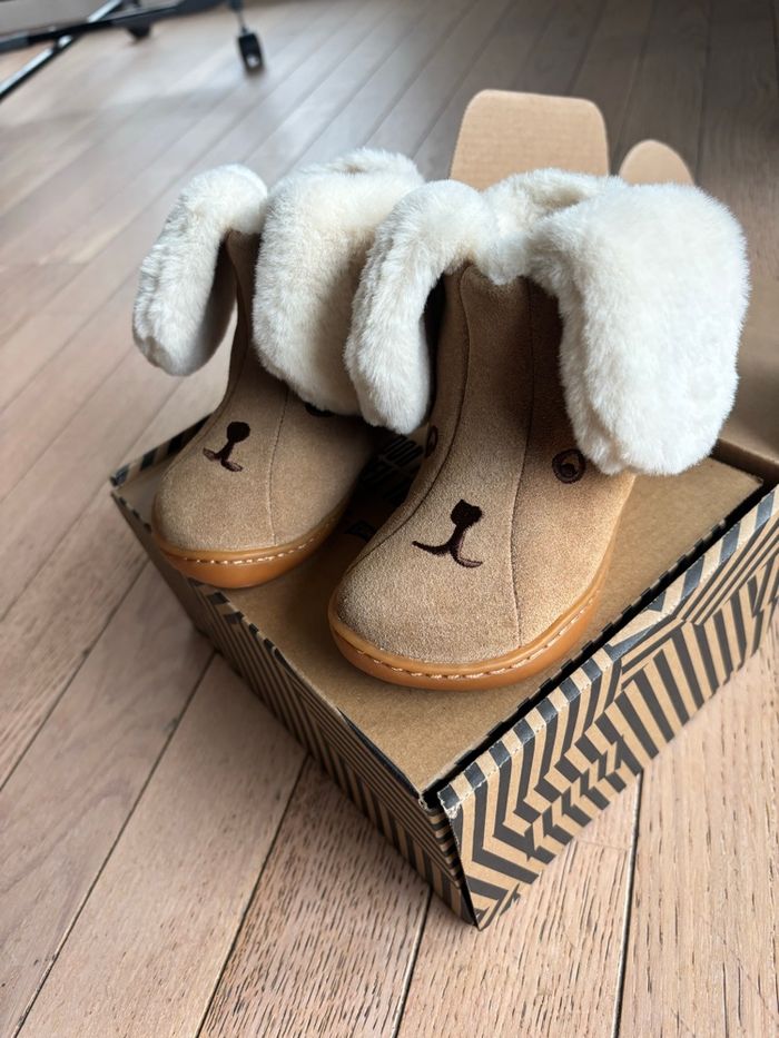 Je vends ces bottines Camper fourrées coloris marron, modèle adorable “petit lapin” 🐰 ✅ NEUVES / jamais portées ✅ Étiquette + boîte d’origine ✅ Achetées sur Petit Pas de Géant (sélection chaussures physiologiques) – prix boutique 74 € Parfaites pour l’hiver : • intérieur bien chaud / fourré • confort + souplesse pour les petits pieds • look canon (les oreilles de lapin 😍) • idéales pour crèche / sorties / quotidien 📏 Pointure : 23 (cf. pédimètre Petit Pas de Géant : env. 13,6–14,4cm). 📦 Envoi rapide et soigné