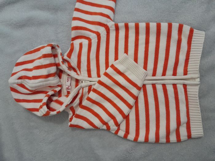 Veste, à capuche, manche longue, à rayure, attache fermeture éclair devant Matière : 100 % Coton