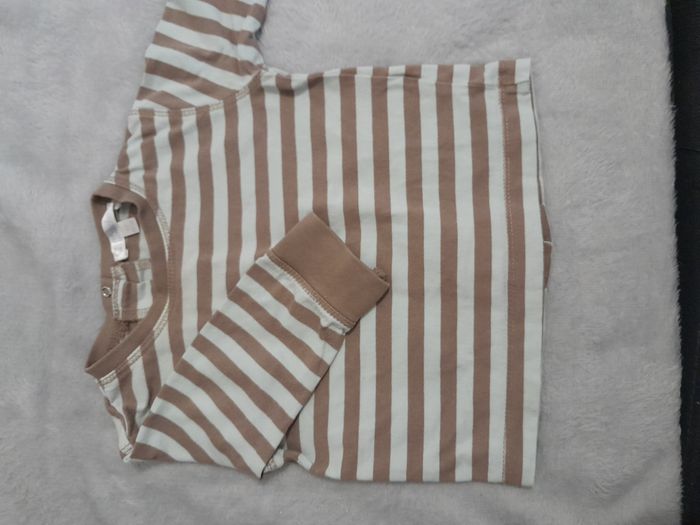 T-shirt, à rayure, manche longue, attache bouton pression au dos Matière : 100 % Coton