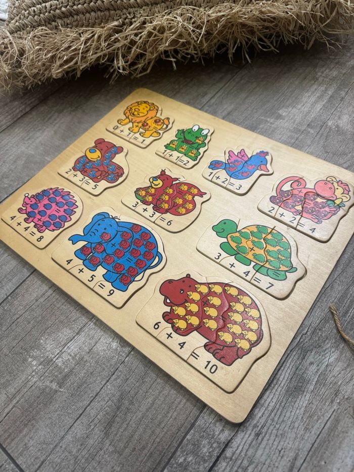 Très joli puzzle pour apprendre à compter Addition avec les animaux Tout en bois Très bonne qualité ❤️