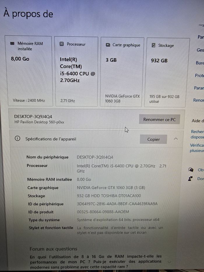 Vends tour HP Pavilion desktop 560 avec son clavier et souris.