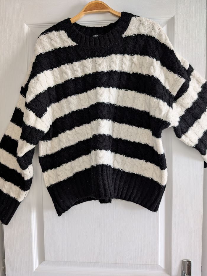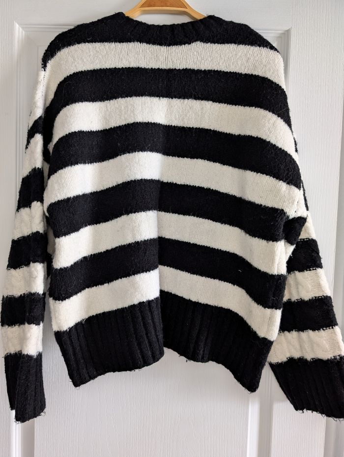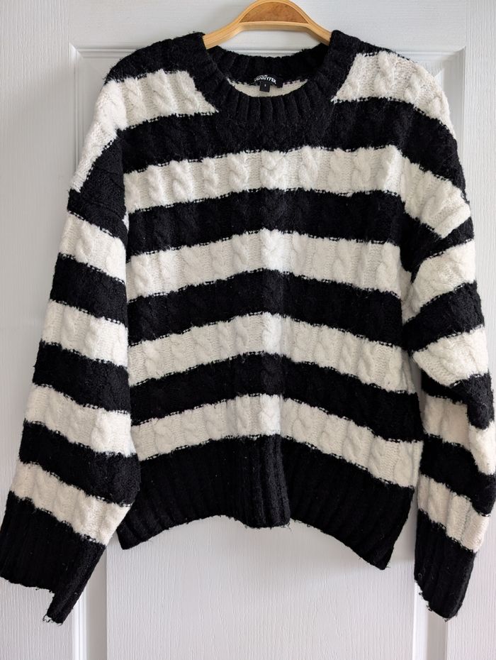 Pull taillé large en taille S Femme. Très peu porté. Bon état pas de défaut.