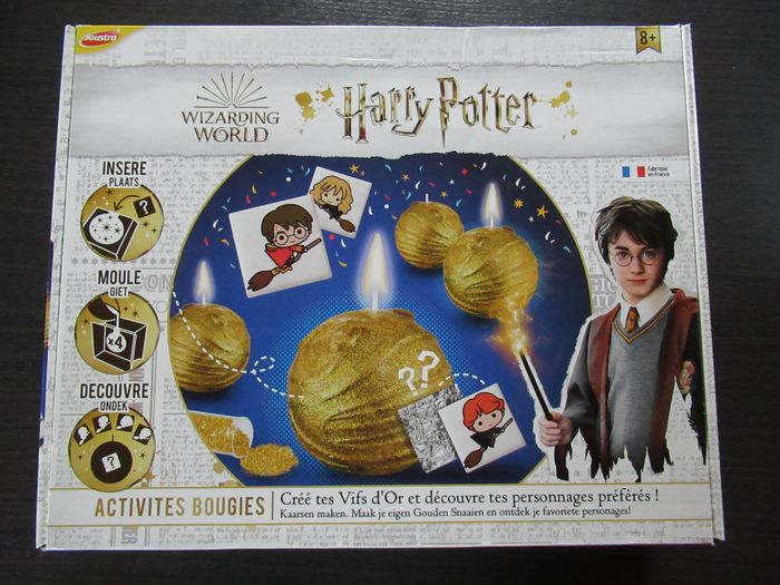 Jeu activité bougies créé tes vifs d'or Harry Potter Joustra neuf, emballé, jamais ouvert Insère ton objet mystère, moule ta bougie Vif d'Or et découvre quel personnage de la saga Harry Potter se cache à l'intérieur !
