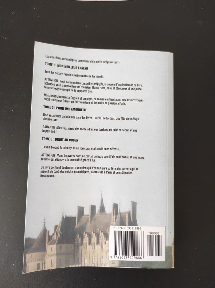 "Livre romance Les Frères Darcy regroupant l’intégrale des 3 tomes en un seul volume 📚❤️ Une saga idéale pour les amateurs de romances familiales et passionnées. Détails : Titre : Les Frères Darcy Contenu : Intégrale des 3 tomes (3 livres en 1) Genre : Romance Format : Livre broché / relié (selon ton exemplaire) État : Très bon état Parfait pour se plonger dans une saga complète sans attendre."