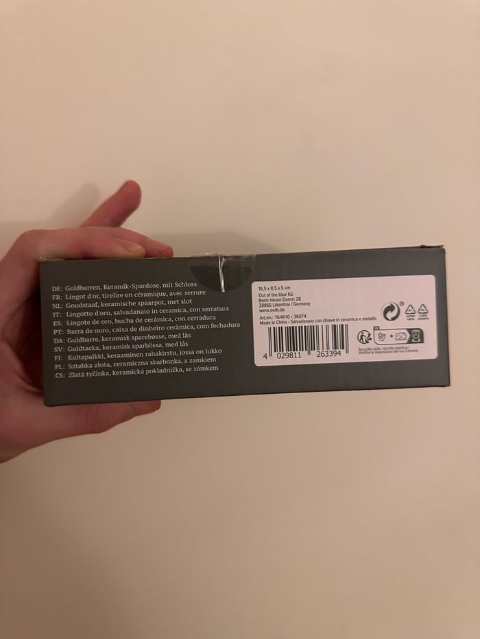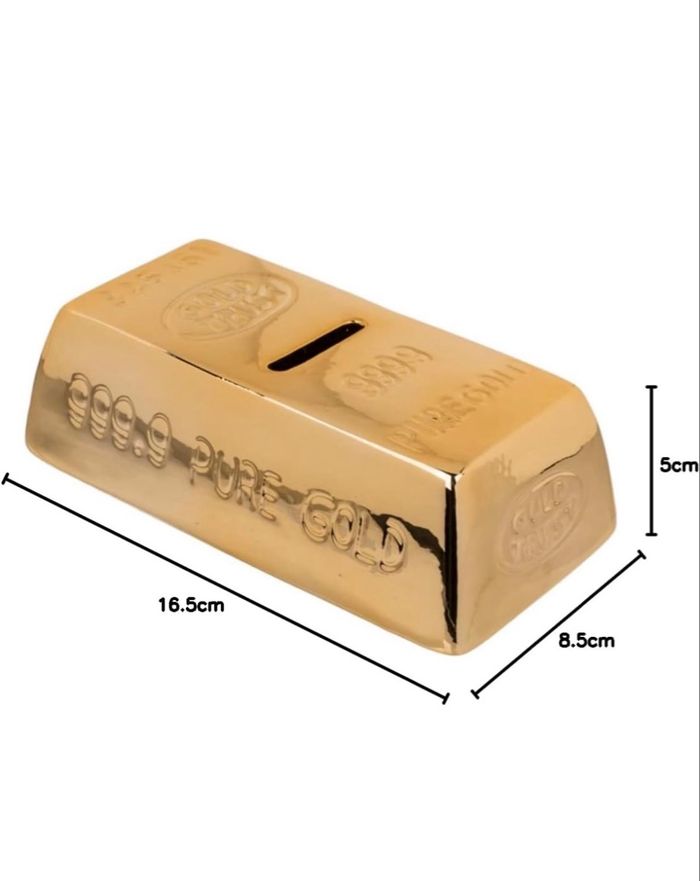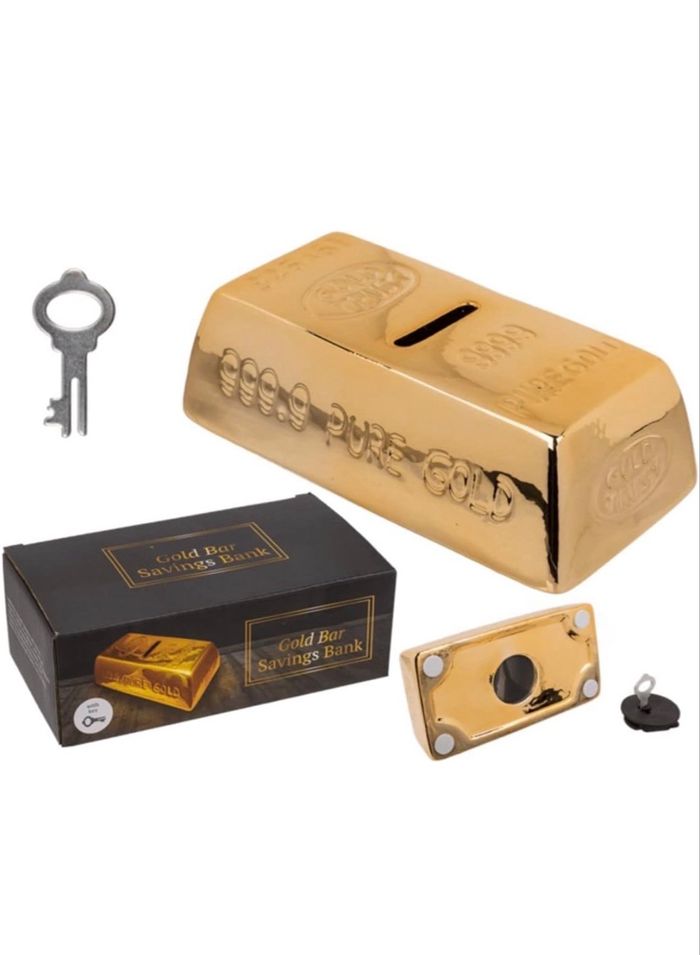 Tirelire en lingot d’or Neuve, jamais ouvert, c’est un cadeau de Noel qui ne me plait pas donc je remet en vente sur cette plateforme Couleur Or - Doré Voir contenant sur la 5 eme photo