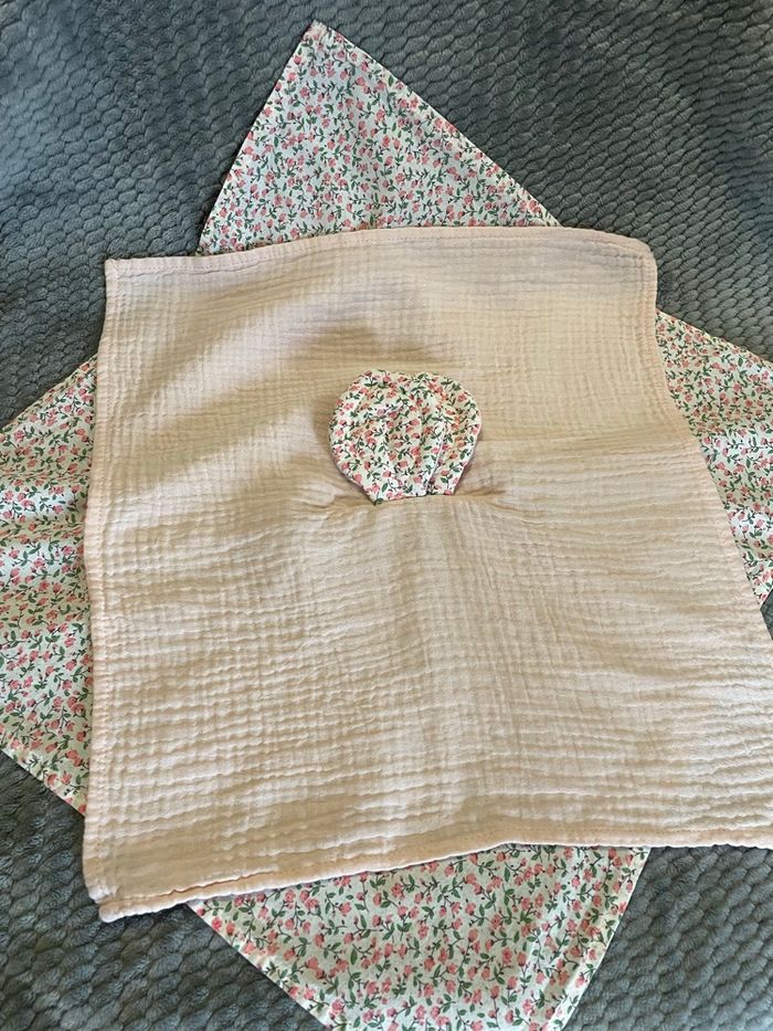 Doudou plat lange rose fleur tissu fleuris - photo numéro 1