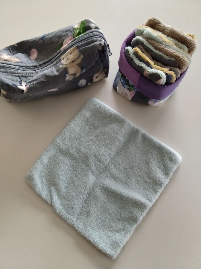 Ensemble trousse de toilette, une serviette et des carrés - photo numéro 1