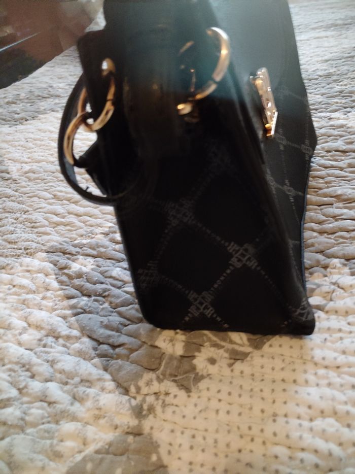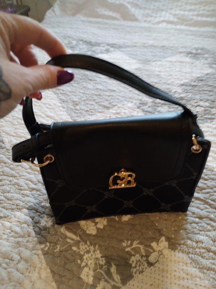 Sac à main avec bandoulière et porté main couleur noir et liseré bleu marque George rech