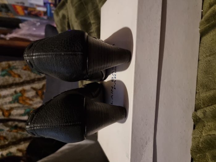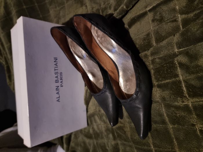 Chaussures à talons femme Alain Bastiani noires pointure 38 1/2. Ferrées aux talons. Portées plusieurs fois. Vendues dans leur boîte d'origine. En bon état. Envoi rapide et soigné. Négociable.