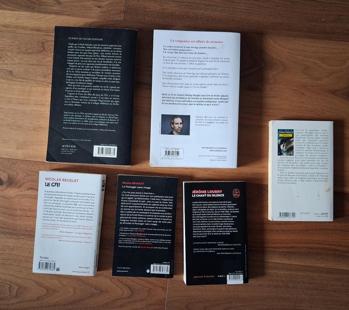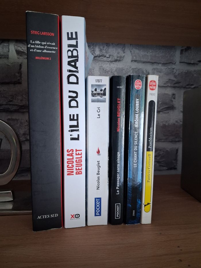 ✏️ La fille qui rêvait d’un bidon d’essence et d’une allumette - Millénium 2 Stieg Larsson Edition Actes Sud Très bon état - mention manuscrite en première page ✏️ L’île du diable Nicolas Beuglet XO Editions Bon état ✏️ Le cri Nicolas Beuglet Edition Pocket Bon état - pages jaunies ✏️ Le passager sans visage Nicolas Beuglet Edition Pocket Très bon état ✏️ Le chant du silence Jérôme Loubry Edition Le livre de poche Très bon état ✏️ PostMortem (offert) Patricia Cornwell Edition Le livre de poche Bon état - pages jaunies