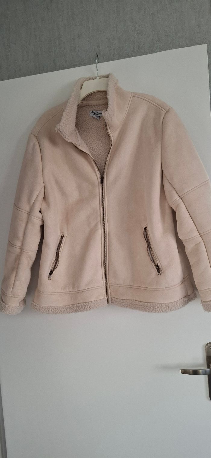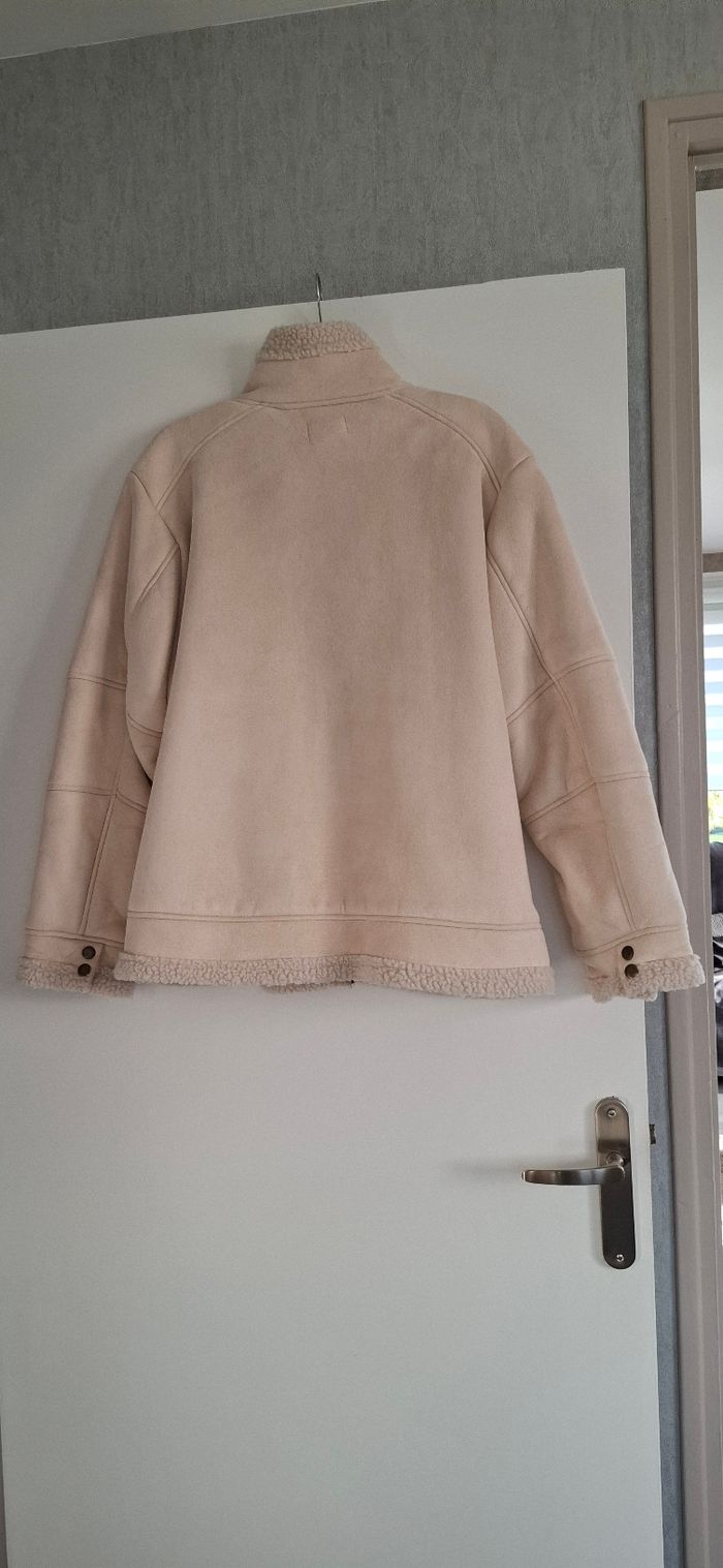Blouson style aviateur en suédine doublé sherpa marque atlas for women taille 46/48 largeur épaules 45 longueur manche 43 longueur totale 64 couleur écru
