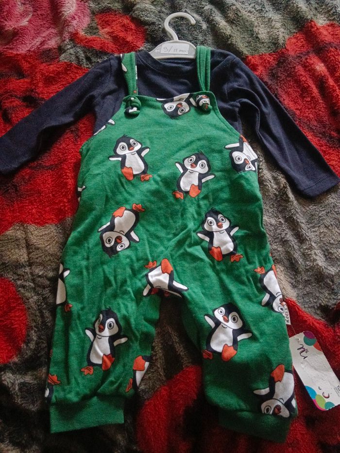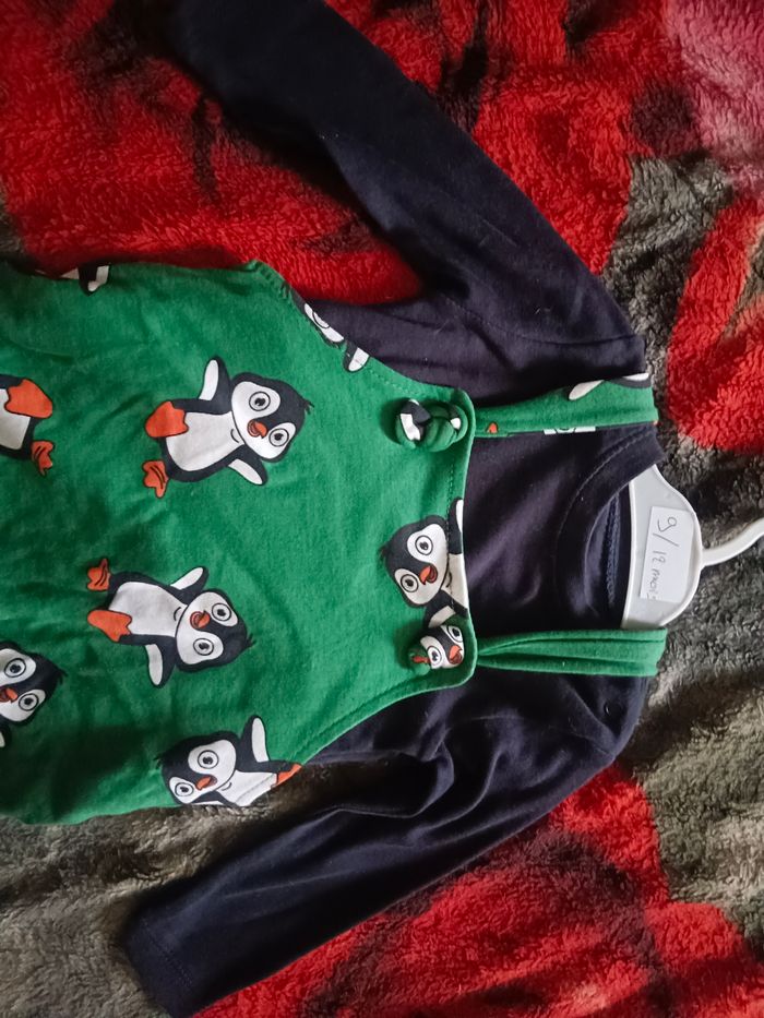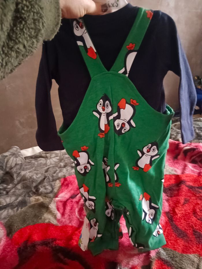 Salopette a pressionvert et le tee shirt bleu marine mangé longue neuf 9/12 mois