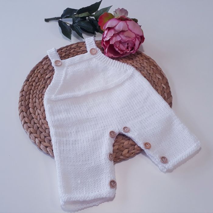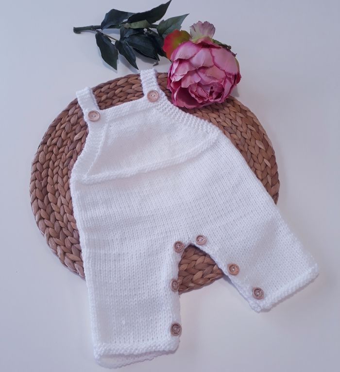 Salopette  tricot bébé naissance mixte  garçon ou fille blanche - photo numéro 4