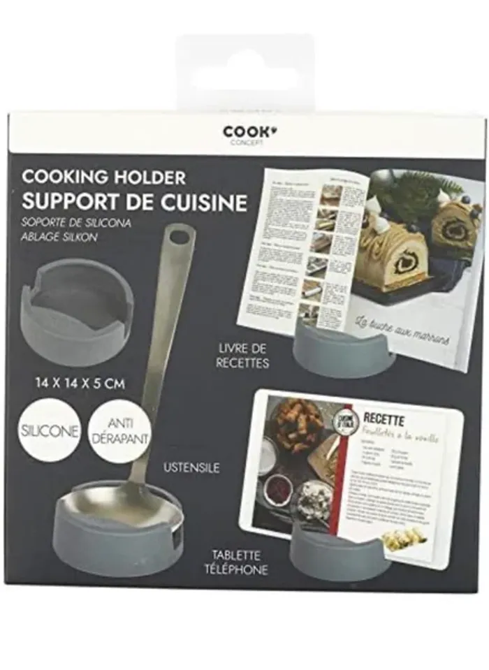 Support Cuisine Cook Concept Gris Multifonction 14x14x5 cm Silicone Antidérapant Neuf