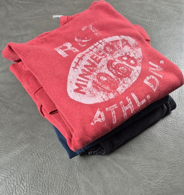 Description : • Sweat vintage R&T "Minnesota 1968" – Taille 10 ans – Bon état • Pantalon bleu KTM Racing – Taille 10 ans – 100 % coton, coupe ample, trou au genou • Jean noir slim ou skinny stretch – Taille 10 ans – Matière synthétique, bon état 📏 Dimensions visibles sur les photos 📦 Envoi rapide sous 24/48h ☀️Réductions automatiques dès 2 articles☺️ 🔍 D’autres vêtements disponibles sur mon profil ! A17