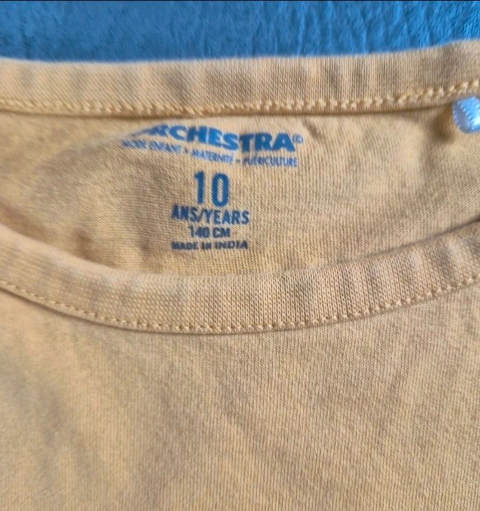 Description : • Marque : Orchestra • Taille : 10 ans • Haut : T-shirt jaune avec motif skateboard • Bas : Pantalon assorti bleu nuit • Matière : 100 % coton Très bon état (TBE) 📏 Dimensions visibles sur les photos 📦 Envoi rapide sous 24/48h ☺️ Réductions automatiques dès 2 articles 💚 D’autres vêtements disponibles sur mon profil A30