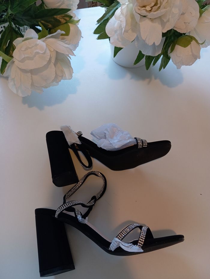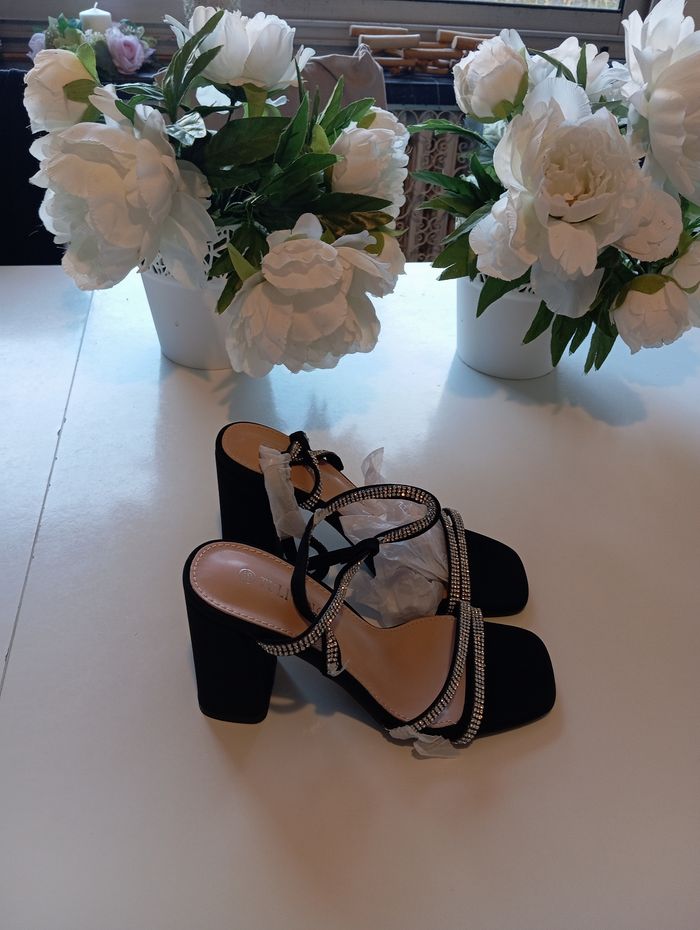 Chaussures pointure 36 neuves ornée de brillant très agréable à porter avec ses 9 cm de talonette vendu avec des sachets afin de protéger en plus de la boîte à chaussures