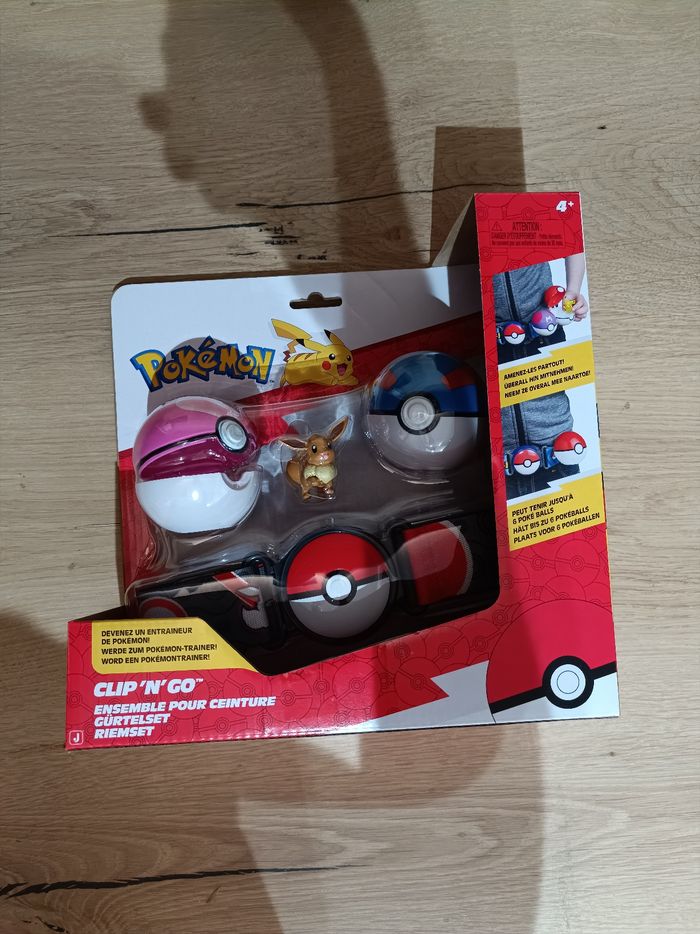 Pack Pokémon Clip N Go Ensemble pour Ceinture Neuf jamais déballé Le pack contient : - 1 Ceinture Pokémon Noire - 2 Pokeball (Love Ball et Super Ball) - 1 figurine de Evoli