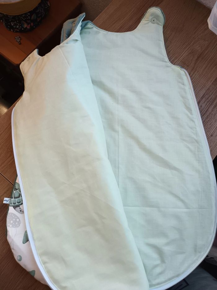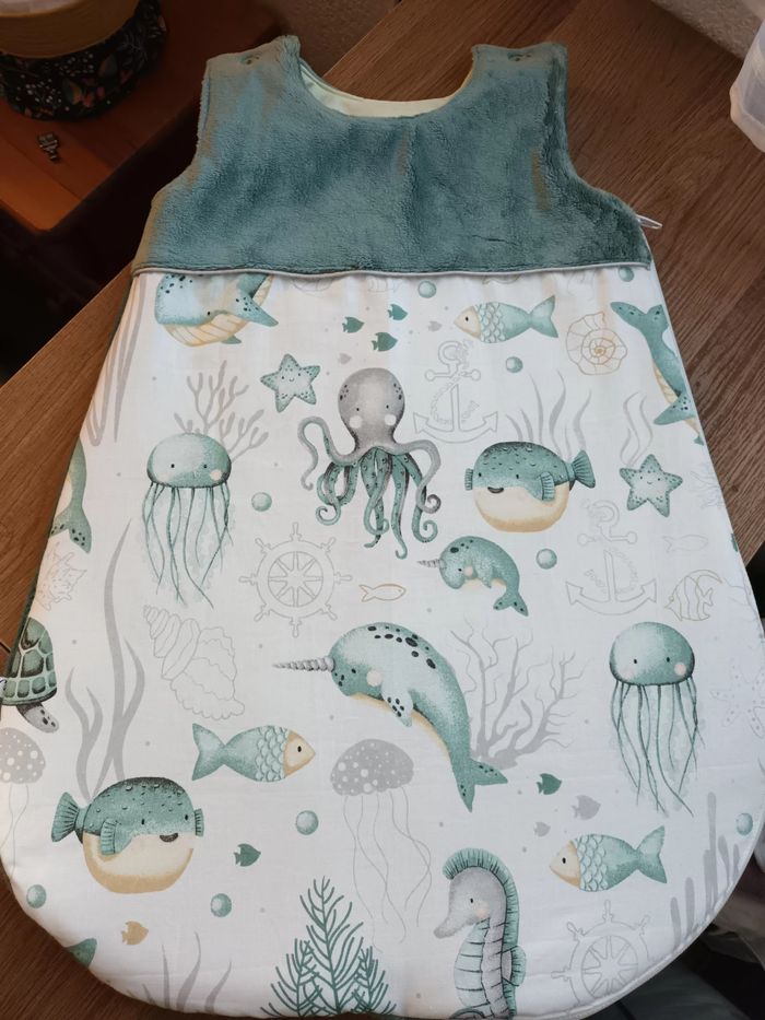 Gigoteuse rembourré 0-3 mois 🌺🌟🌺 Fermeture éclair lateral et bretelles avec boutons pression Tissus coton et micropeluche Couleur vert sauge et thème animaux marins 🌸🌸🌸🌸 Lavage à 30'degrés ⚠️ A ne pas utiliser de sèche linge ⚠️ Repassage doux ⚠️ Envoie rapide et soigné 😊