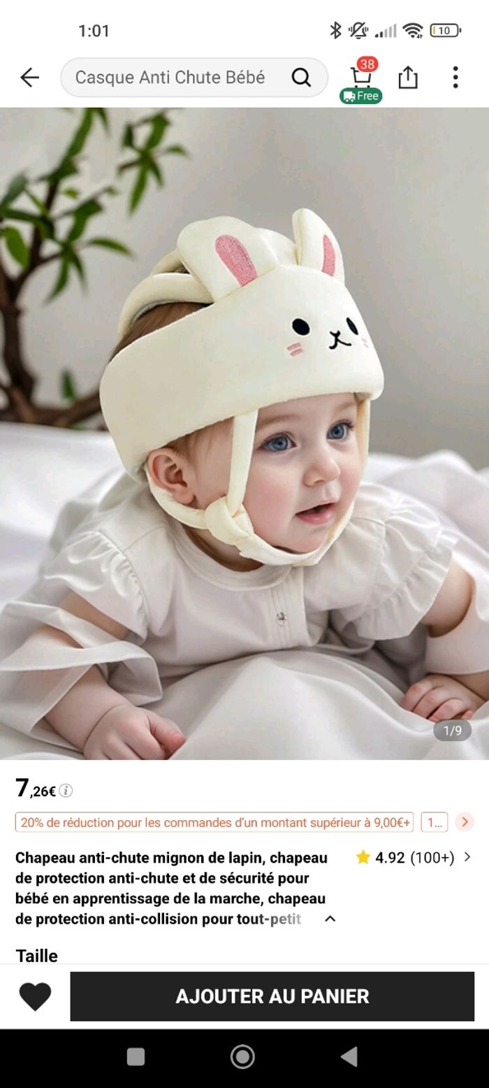 Casque de protection pour bébé, modèle en forme de lapin. Idéal pour protéger la tête de votre enfant lorsqu’il commence à ramper ou marcher. Léger, doux et confortable, il s’ajuste à la tête grâce à un système de scratch réglable. 🔸 De 6 à 24 mois 🔸 Couleur : crème 🔸 Matière : mousse légère 🔸 En très bon état Parfait pour la maison ou les débuts de marche sans risque de bosses.