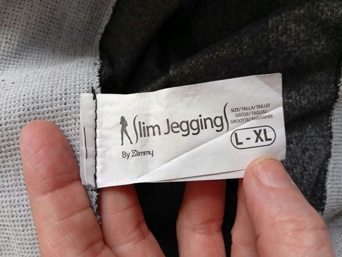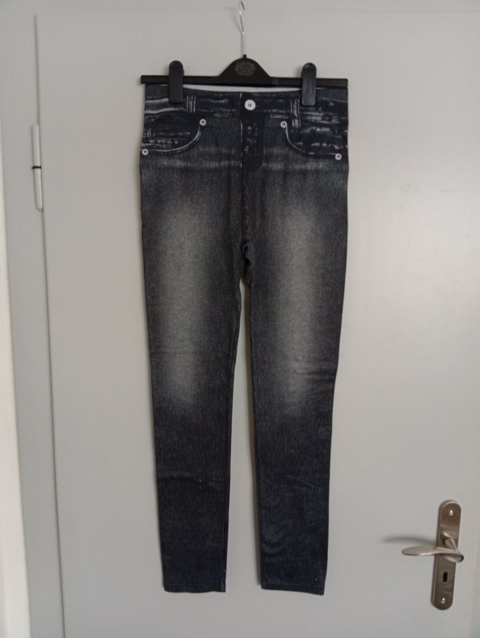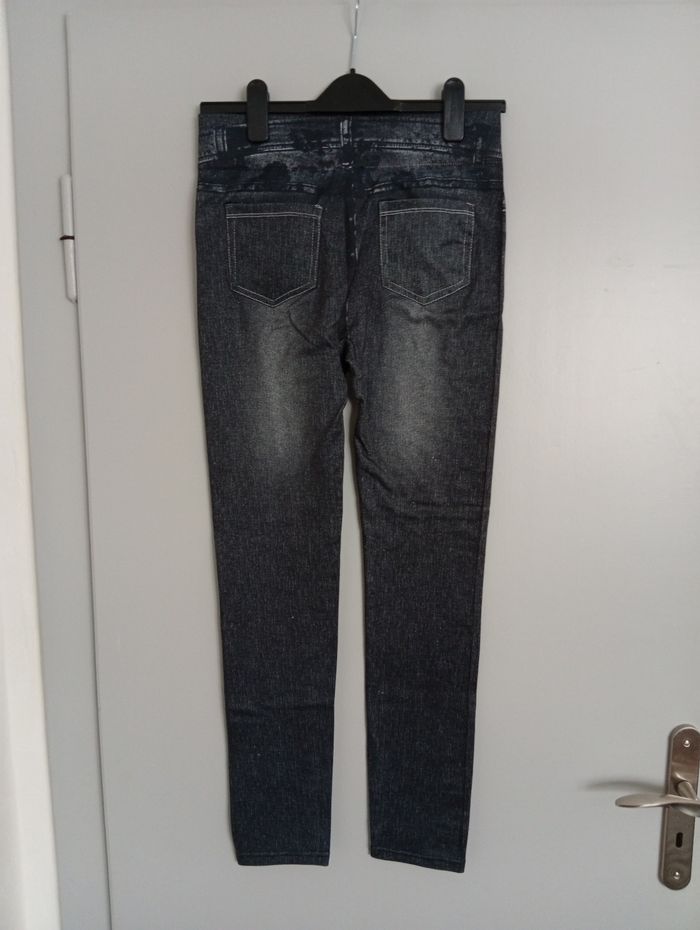 Polyester, élasthane. Jegging. Trompe-l'oeil jeans. C18