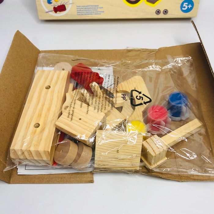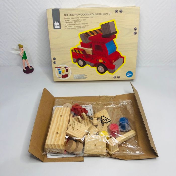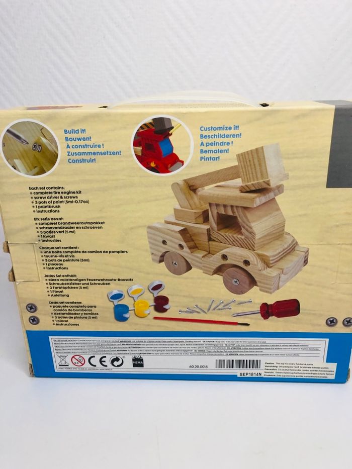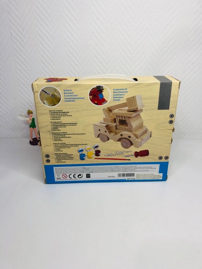 Set de construction en bois d'un camion de pompiers. - Type de produit : Jeux de construction - Âge recommandé : 5 ans et + - Matière : Bois Neuf, boite juste ouvert