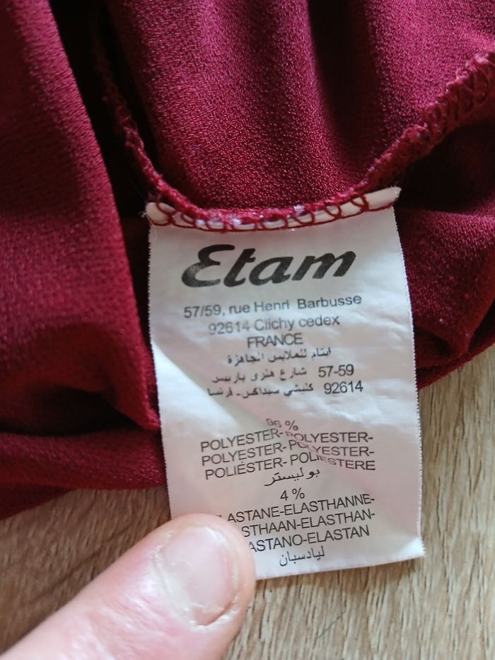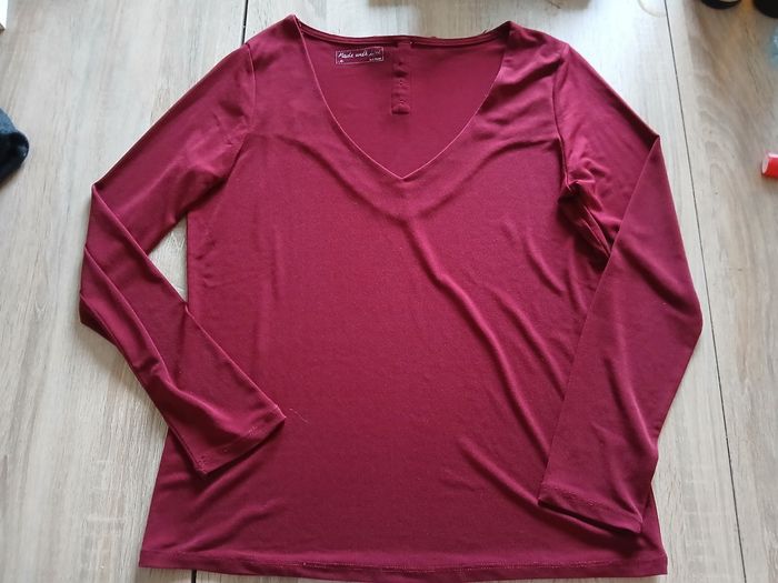 Haut a manches longues uni Bordeaux de la marque Etam. Taille M Polyester et élasthane. Très bon état